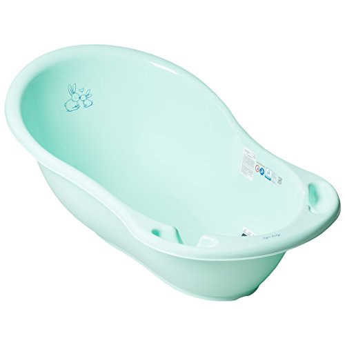 Bebé Bañera con desagüe y termómetro animales tema, diseño de conejos azul azul