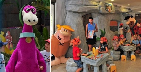 Al llegar al hotel, los niños hacen su propio check-in y reciben regalos relacionados con los dibujos animados que nos trasladan a la Edad de Piedra. Los desayunos y los almuerzos también son temáticos, con vajilla, mantel y servilletas prehistóricos.