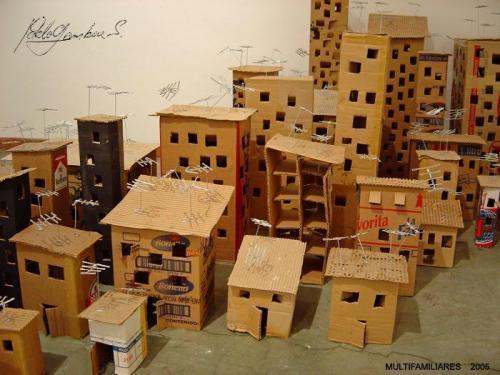Hoy, a través de la página de la Asociación Reciclando, que nació en 2005 con el objetivo de promover el reciclaje creativo, he encontrado una nueva propuesta que me ha parecido maravillosa. Se trata del trabajo del artista ecuatoriano Pablo Gamboa Santos quien, con cajas de cartón que terminarían en la basura, nos muestra como realizar una ciudad tan compleja como deseemos y que me ha parecido adaptable para nuestros niños.