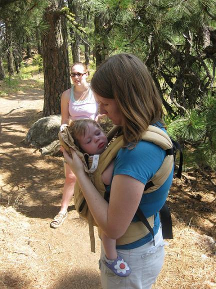 Cuando los niños son pequeños y todavía no saben andar, o caminan pero se cansan pronto, podéis practicar el porteo. Hay todo tipo de portabebés, desde mochilas ergonómicas a fulares, sólo tenéis que encontrar el que os resulte más cómodo a ambos, dependiendo de la edad del niño. Allí podéis cargarlo, tanto la madre como el padre, e ir todos al mismo paso. Incluso hay rutas que podéis hacer con el carrito, sobre todo si es robusto y tiene ruedas grandes.