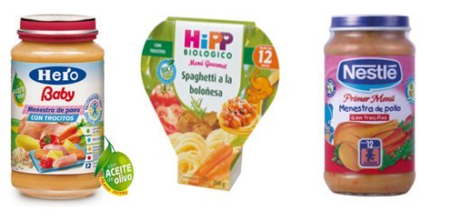 Hero Baby con trocitos. Es una de las marcas más conocidas y fáciles de encontrar en el mercado. Tiene una gama de recetas variada para bebés a partir de 12 meses (ternera a la hortelana, pollo con verduras, menestra de pavo...), con menús elaborados con aceite de oliva y ácidos grasos esenciales y bajos en sal.