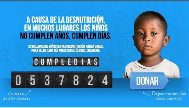 Para ellos cada día puede ser su último día de vida. Es por eso que Unicef ha puesto en marcha la campaña Cumpledías contra la desnutrición infantil, porque hay niños que no cumplen años, cumplen días.