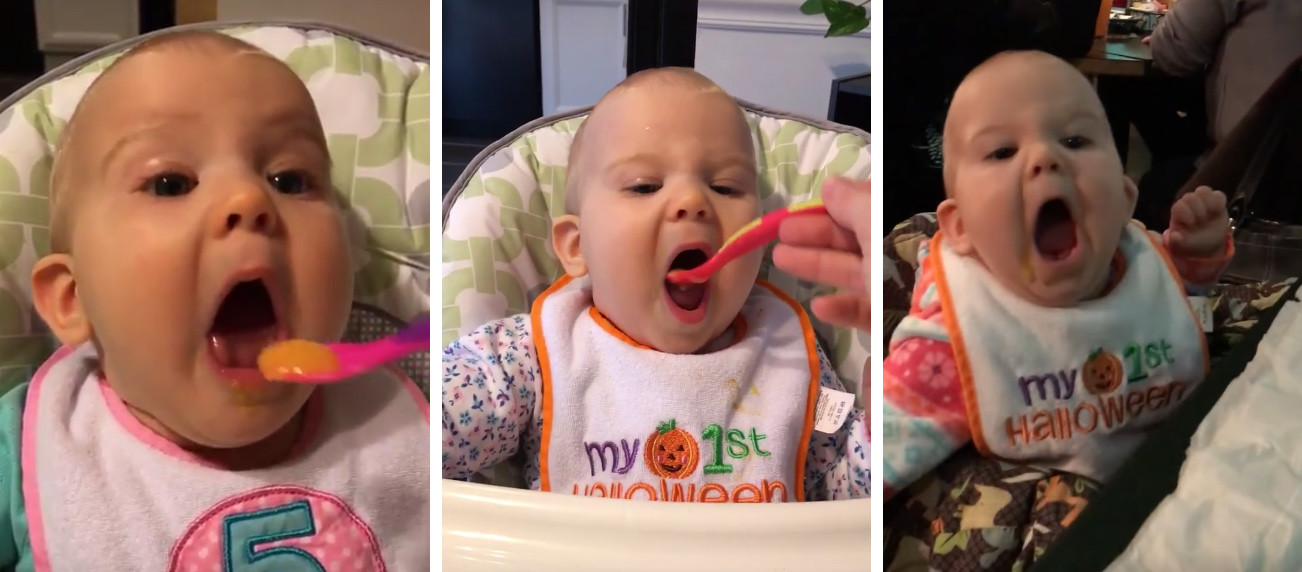 Imaginad ahora que sois la mamá que graba estos vídeos y que tu bebé no solo no cierra la boca, sino que la abre como si no hubiera un mañana, como diciéndote: ¡Mamá, me encanta la comida que me das! Vamos, el sueño de toda madre y padre.