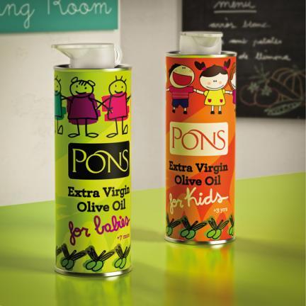 Pero a veces el sabor puede resultarles muy fuerte, por eso Grup Pons ha desarrollado las marcas "Pons for babies" un aceite de oliva gourmet para bebés a partir de 7 meses y "Pons for kids" para niños de más de 3 años. Han sido diseñados especialmente, con un packaging atractivo y unas notas de cata más suaves, adecuadas al paladar de los más pequeños.