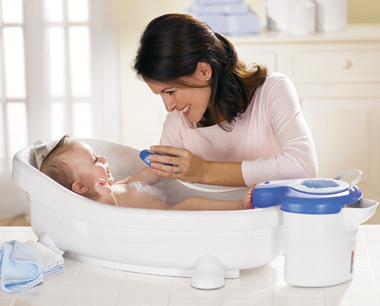La bañera debe ser de plástico para poder limpiarla, aunque no es aconsejable usar productos abrasivos, por lo que lo mejor es lavarla y secarla después de cada baño. Las bañeras son de varios tipos, algunas llevan su propio soporte y otras se colocan en la bañera de los adultos, pero es fundamental que queden a una altura que nos permita bañar al niño sin tener que agacharnos.