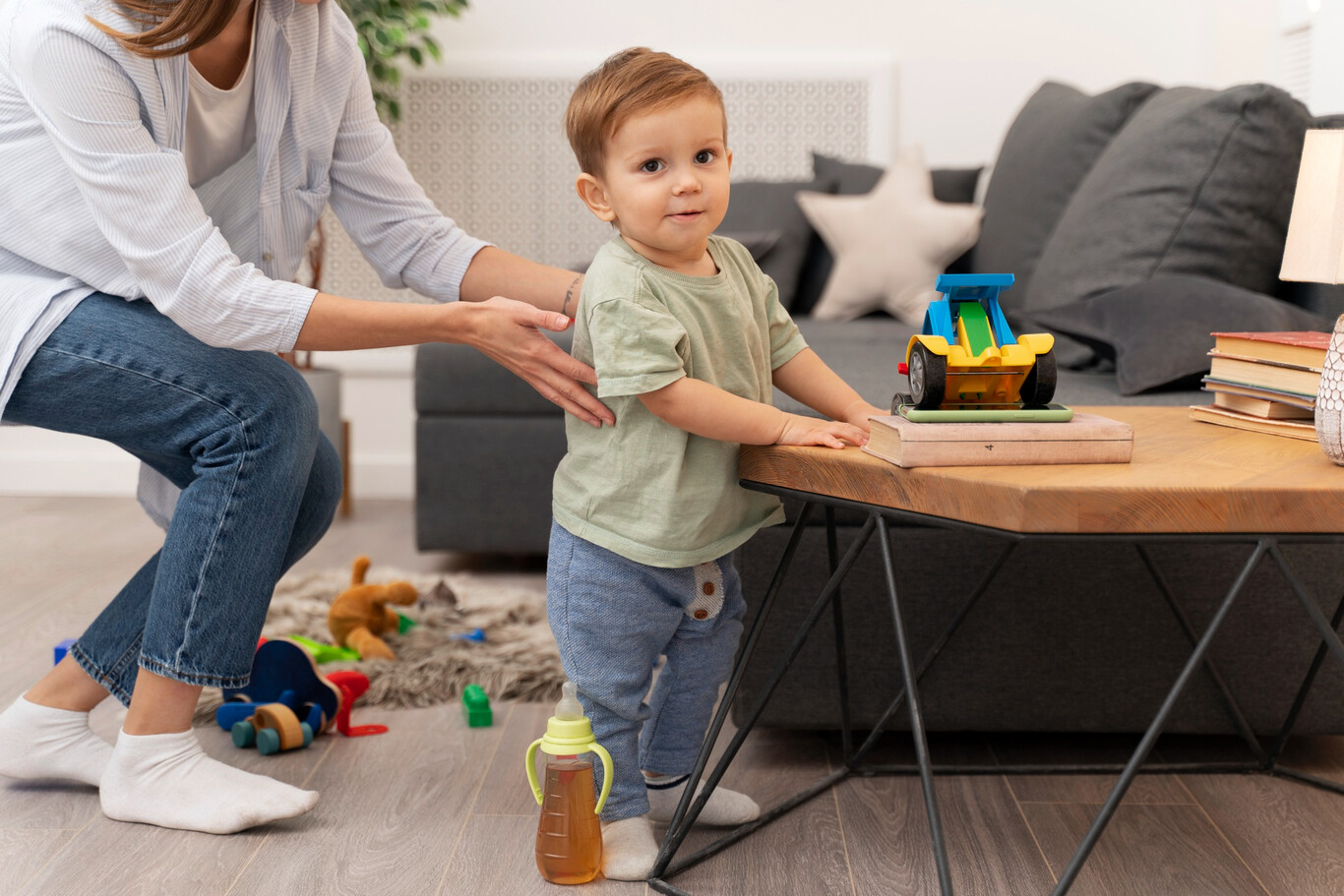 A medida que el bebé va creciendo y ganando una mayor autonomía motora, intentará ponerse de pie por sí mismo, agarrándose a los barrotes de la cuna o a los muebles.