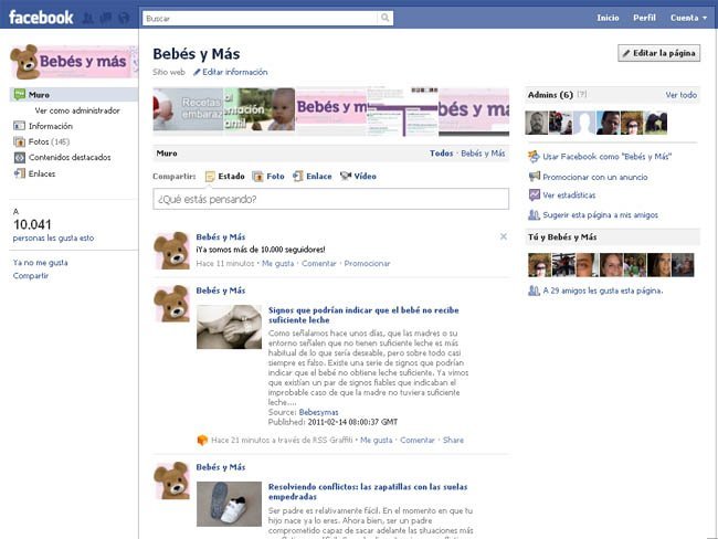 Empezamos la semana con una buena noticia. ¡La página de Bebés y más en Facebook ya cuenta con 10.000 seguidores! 10.041 hasta el momento para ser más exactos.