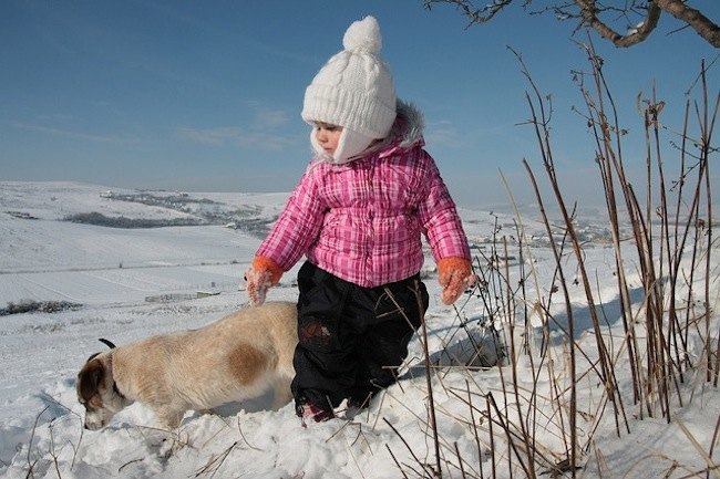 Hoy la niña tiene un año y medio y le tomaron esta foto en los Cárpatos, Rumanía, cerca de la ciudad de Cluj-Napoca en Transilvania. ¡Un paisaje precioso que seguro que disfrutarían en un espectacular día de nieve!