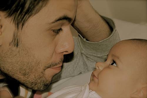 Los bebés recién despiertos expresan una dulzura especial. Además, están descansaditos y receptivos, por lo que es el momento ideal para conversar con ellos, hacerles mimos y sonrisas. Su tío ha aprovechado la oportunidad para comunicarse con Eder a través de la mirada. Los ojos del bebé lo dicen todo.