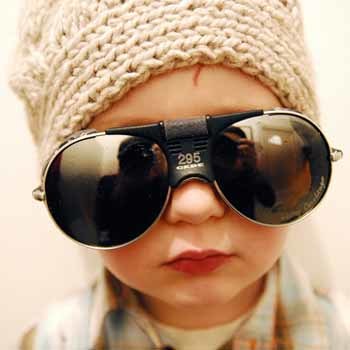 A los padres suele divertirnos probarles a nuestros bebés las gafas de sol de los adultos, aunque estas parecen más bien de un esquiador. Será por la curiosidad de ver la desproporción de semejantes cristales en sus pequeñas caritas.