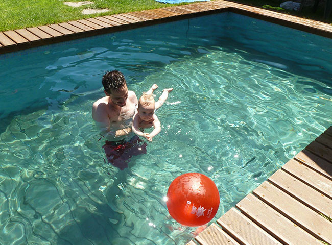 Según nos cuentan sus padres, Oliver y Nuria, nada más meterse en el agua empezó a mover las manos y los pies con tanta energía que parecía que hubiera nadado toda su vida. Lo pasó genial, y ellos también.