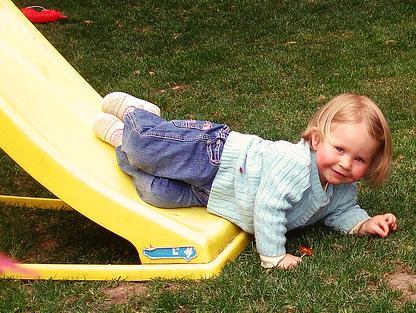 Según nos dice, es Emilia la que en muchas ocasiones solicita que le tomen una foto, y en la que comparten con nosotros posa muy bien, o es que se tira con mucho arte por el tobogán.