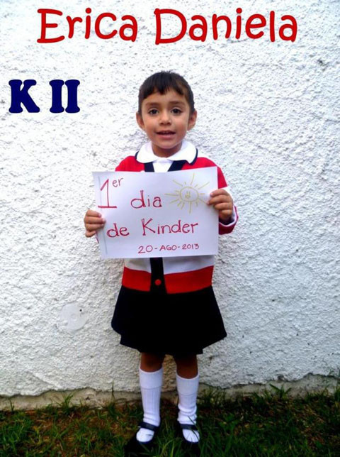 Hoy os traemos la foto de Erica en su primer día de cole, una niña preciosa de 4 añitos que ya va, nada más y nada menos, que a segundo de Kinder.