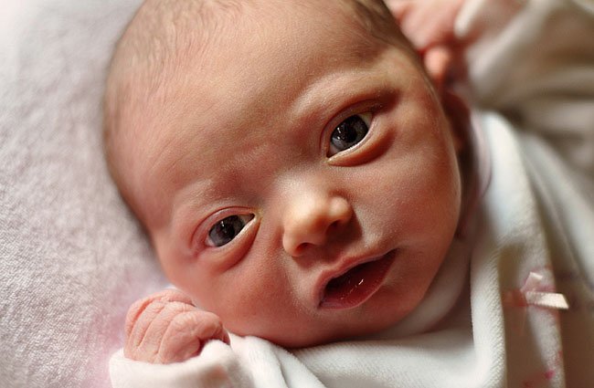 Tiene apenas ocho días de vida, pero la foto fue tomada unas pocas horas después de nacer. Como podemos ver, es una niña de lo más expresiva que asomó al mundo con los ojitos muy abiertos mirándolo todo.
