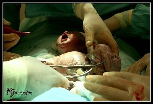 Ahora observad la imagen de Raúl nada más nacer, escuchad como los gemidos se transforman en llanto, pensad en sus sensaciones al notar que varias manos expertas, fuertes y frías le tocan, le cogen, le limpian, le aspiran las secreciones y le pinchan e imaginad qué puede pasar por su cabeza, si apenas unos minutos, unas horas antes, estaba dentro de mamá, oyendo su corazón, su voz, meciéndose con el vaivén de sus pasos y flotando en el líquido amniótico. Qué duro debe ser para un bebé llegar a nuestro mundo y qué poco pensamos en ello.
