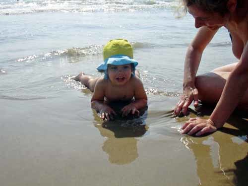 La niña de la foto se llama Carla, tiene 20 meses y podemos ver que se lo pasa genial jugando en la orilla del mar, sin querer salir por más arrugada que esté.