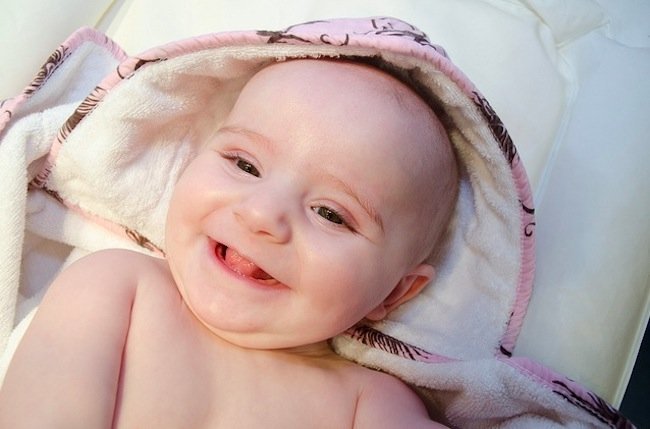 Nos cuenta su papá que la pequeña es muy simpática, tiene cinco meses y medio, vive en Madrid y su momento preferido del día es la hora del baño, como demuestra su feliz expresión, ataviada con la capa de baño.