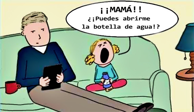 Y yo voy haciendo y tal, pero hay momentos en que los "¡Papá!" se acumulan, o estoy ocupado con otra cosa, y entonces tengo que decirles: "anda, díselo a mamá", como recordándoles que en casa no sólo está papá. Como creo que esto de la imagen (no sé quién es el autor, lo encontré en las redes sociales) le pasa a bastante gente, esta semana, en la pregunta de la semana os preguntamos, para que nos contéis vuestras anécdotas: