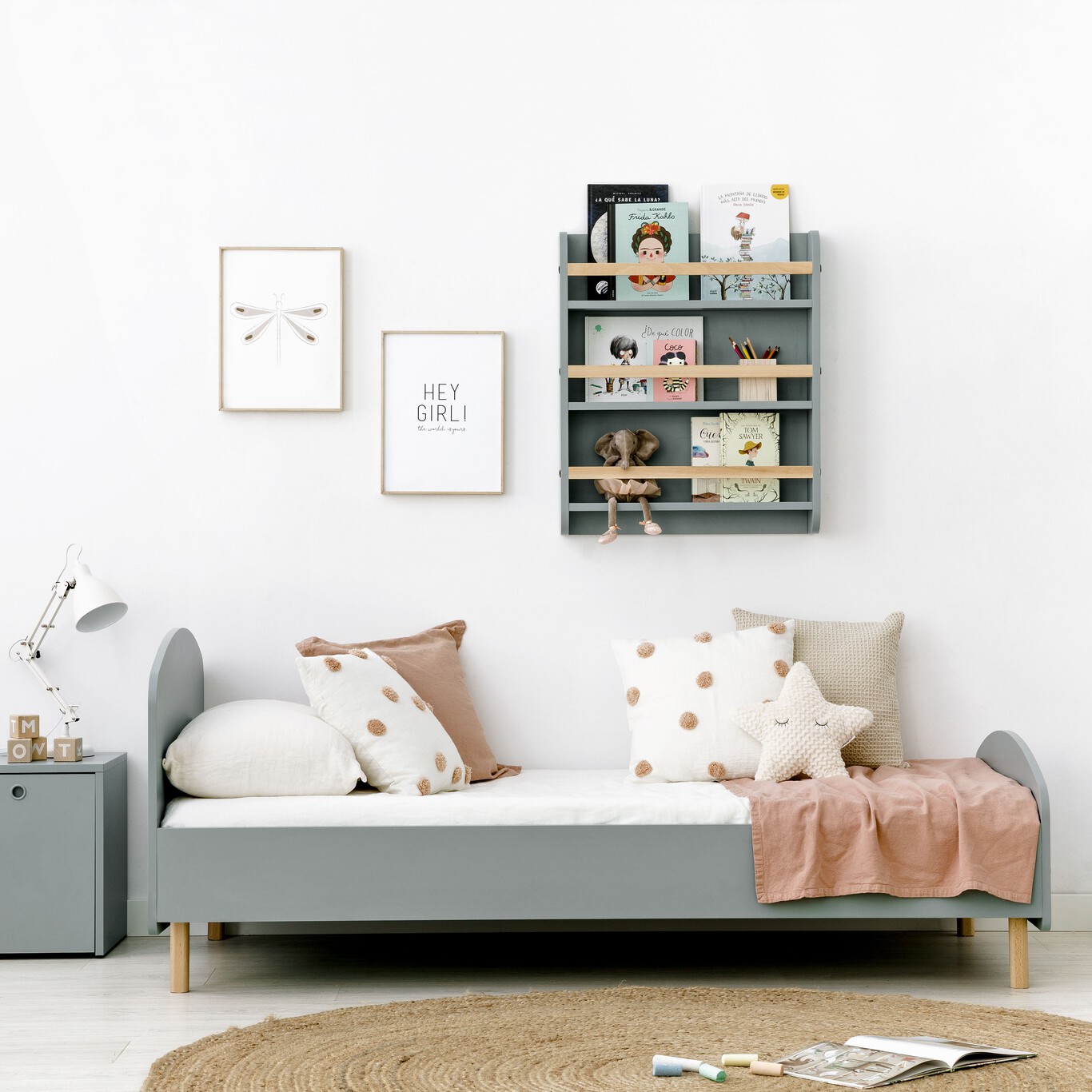 Cama infantil que se caracteriza por un diseño de líneas sencillas y acabados redondeados. Fabricada en melamina y disponible en tres colores: blanco, pale y fiordo de Kenay Home. Su precio era de 259 euros y ahora es de 239 euros.
