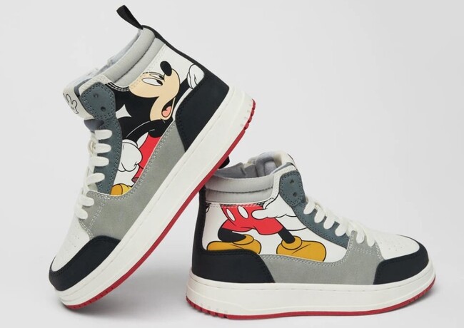 Zapatillas de Disney tipo bota con Mickey Mouse como protagonista de Zara. Su precio es de 27,95 euros.
