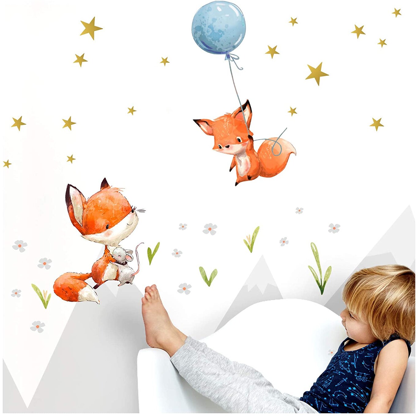 Little Deco Adhesivo decorativo para habitación infantil con 2 zorros I M – 92 x 102 cm (ancho x alto), diseño de zorro con globo de zorro y animales para habitación infantil DL360