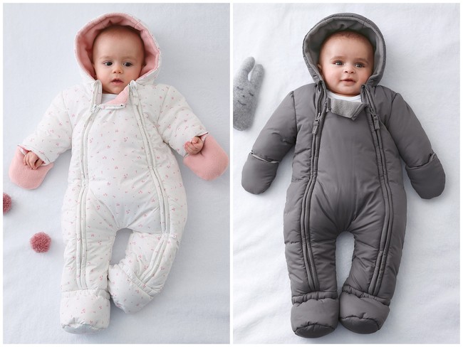Este buzo se adapta perfectamente a los primeros meses de vida del bebé. Va totalmente guateado y lleva forro polar en color gris oscuro. Abertura total con cremallera, bajos de la pierna elásticos y manoplas integradas plegables. De Vertbaudet, por 35,99 euros.