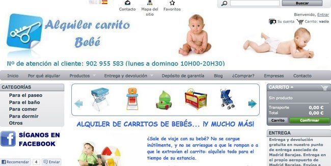 En Alquiler Carrito Bebé ofrecen un servicio de alquiler de carritos, sillas de paseo, tronas, bañeras, mochilas y todo tipo de artículos que puede llegar a necesitar nuestro bebé cuando estamos de viaje o recibimos la visita de un bebé en casa.