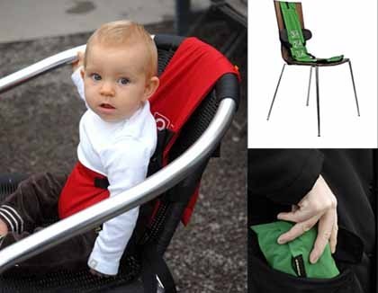 En realidad, In the Pocket Baby es un adaptador para cualquier tipo de silla que consta de un arnés con un gran bolsillo donde colocar a tu bebé para que pueda sentarse seguro.
