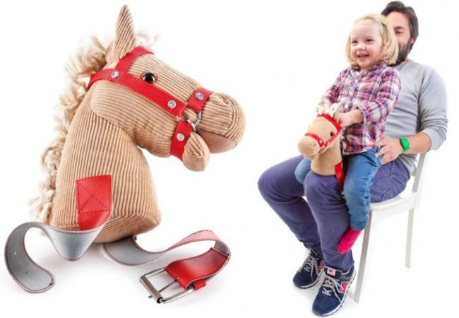 Por ello a una empresa alemana se le ocurrió la feliz idea de crear un, como os lo describiría yo, un trozo de caballo, la cabeza para ser más exacto y sobre todo convertirlo en algo útil, pues esta cabeza de peluche equino se ata con cinchas a la pierna del sufrido padre y por otro lado el pequeño aprendiz de jinete puede sujetarse par la crin del caballo evitando así, innecesarios y desagradables aterrizajes forzosos.