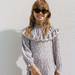 Vestido camisero de tejido pijama con estampado de rayas en azul y blanco y mangas globo. Su precio es de 22,95 euros.
