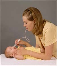 Nosefrida es un tubo plástico con una manguerita que se coloca un extremo en la nariz del niño y el adulto a través de ella succiona las mucosidades aplicando la intensidad que él crea necesaria.