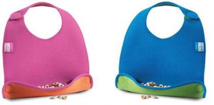 Es de neopreno, suave y absorbente, resistente a las manchas y lavable a máquina. Además cuenta con el bolsillito que recogerá el alimento que pueda caer.
