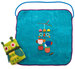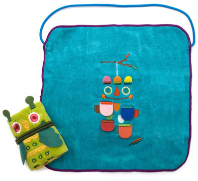 Porque cuando se despliega, aparte de estar adornado con dibujos bordados, tiene las fundas para poder introducir la mano y hacer un poco de teatro de marioneta. Un buen premio si se acaba toda la comida...