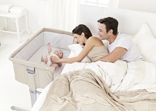 - Cuna de colecho Next2Me: cuna color gris pearl, que se adosa a la cama de los padres mediante un anclaje, aunque también se puede usar como cuna estándar. Tiene una altura regulable en seis posiciones y reclinable en dos posiciones para facilitar la digestión en caso de reflujo o resfriado.