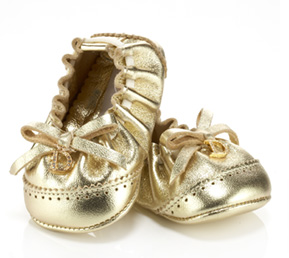 Dior ha lanzado una línea de ropa infantil de la que de momento sólo conocemos estas bailarinas de cuero doradas que sin duda, vestirán elegantemente los menudos pies de nuestras princesitas, pero como decíamos, no por la marca que las representa, pues hay diseños tan clásicos que pueden estar elaborados por cualquier fabricante que quiera destacar por su calidad.