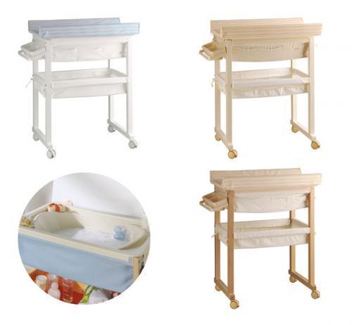 Mis favoritas son las de Micuna, que puedes ver encima en este post. Su precio es más elevado, supera los 100 euros. Los modelos de Micuna tienen ruedas, lo que te permite moverlas cómodamente por la casa hasta el baño para vaciarlas. Además tienen una cesta inferior donde puedes poner todas las cremitas y pañales que vas a necesitar tanto durante el baño como mientras le vistes, porque se convierten fácilmente en cambiadores.