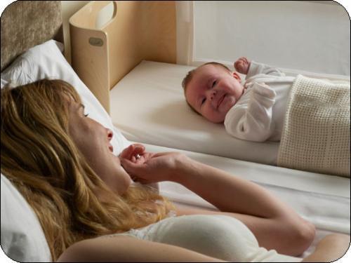 Así, adosándola a la cama matrimonial a la misma altura del colchón, el recién nacido puede estar seguro en su propio espacio, en contacto con la madre y ser atendido por la noche sin barreras.