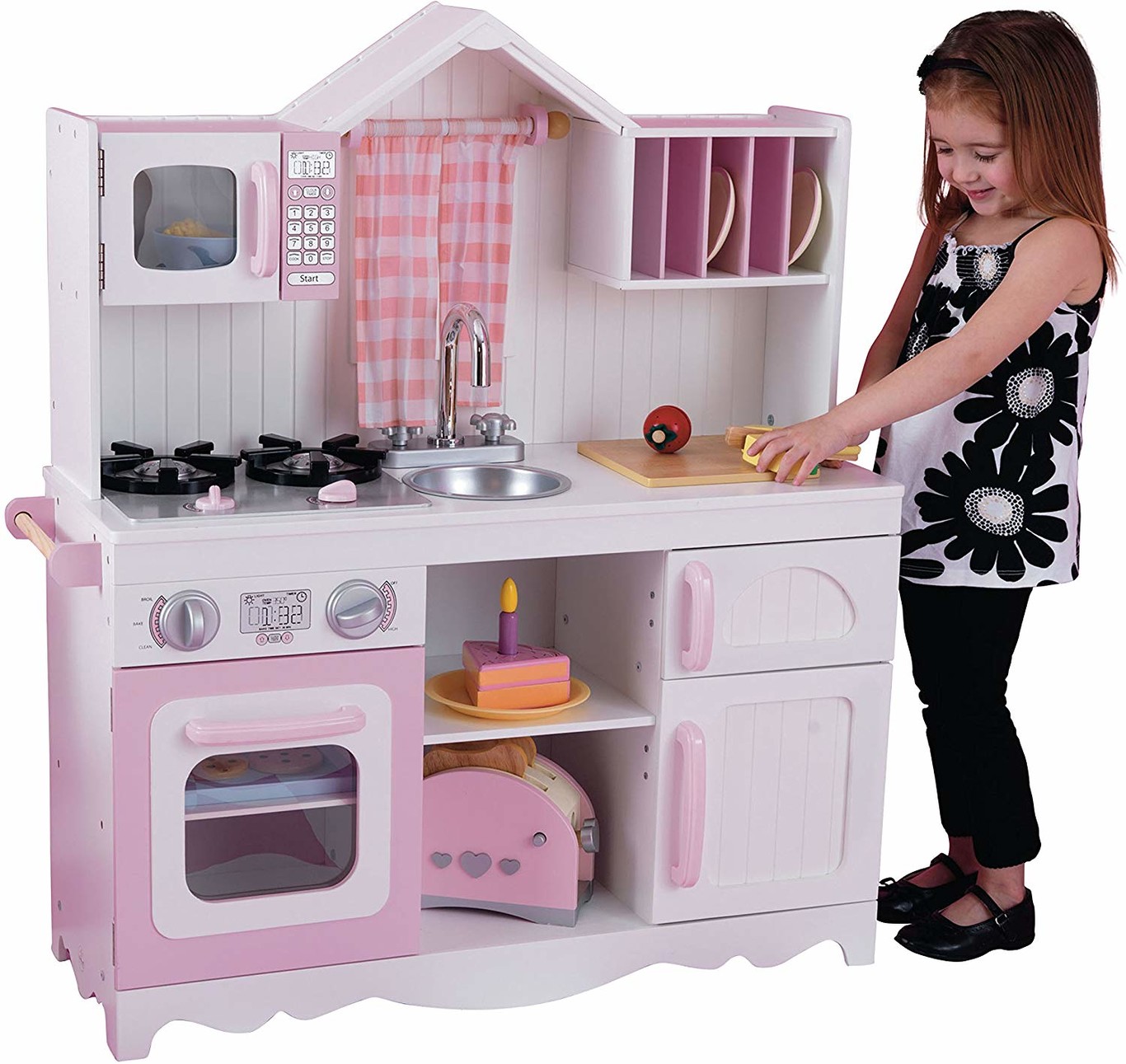 - Cocina de juguete estilo campestre: cocinita con accesorios fabricada en materiales resistentes y de fácil limpieza, para que los niños desarrollen su imaginación y juego simbólico. En Amazon por