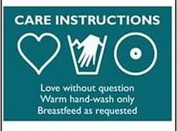 Imitando el estilo de las etiquetas para el lavado de la ropa, se ha creado una simpática camiseta para bebés con instrucciones para su cuidado.