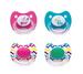 Los chupetes están disponibles con tetina fisiológica de silicona, elaborados con materiales libres de bisphenol-A en talla única +0 meses, y tetina anatómica de látex de de cero a seis meses y a partir de seis meses.