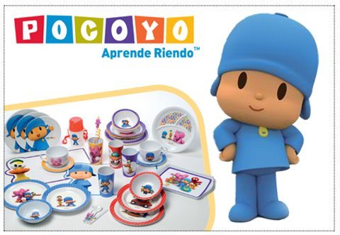 Esta mañana no me he podido resistir a hacerme con una oferta de lanzamiento de una nueva colección: la vajilla y libros de Pocoyó. La primera entrega está ahora en los kioscos al precio de 2'99 euros, e incluye el libro 1 ("El color azul"), el plato llano puzzle Pocoyó y una cuchara.