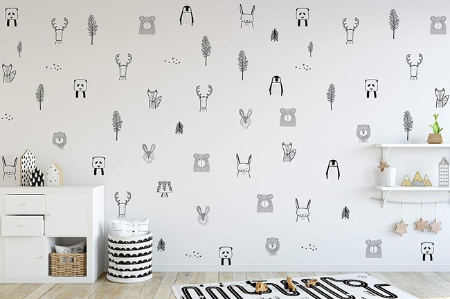 Un detalle que cambiará por completo el aspecto de la habitación es decorar las paredes. Si no quieres recurrir al papel pintado, tienes la opción de colocar pegatinas individuales que crean un efecto muy divertido. Este pack contiene 46 pegatinas en blanco y negro con motivos de simpáticos animales. Es posible que tengas que comprar más de un pack, dependiendo de la superficie que quieras cubrir. Se consigue en Amazon por 12,99 euros el pack.