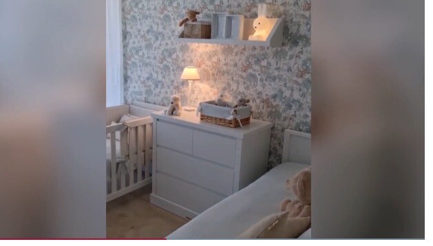 La empresa responsable de la decoración es la misma que 13 años atrás se encargó de la de su hija Daniela. En el room-tour podemos ver que en la habitación predominan los tonos verde agua y azul claro, con detalles neutros en mostaza claro, y animales de peluche como objetos decorativos.