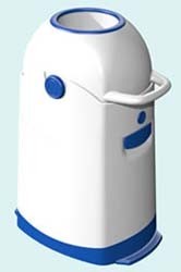 Asalvo tiene contenedores de diferentes tamaños tanto para uso doméstico como para guarderías, por ejemplo. El más pequeño tiene capacidad para unos 30 pañales, cuesta 60 euros y la ventaja es que no necesita recambios pues funciona con bolsas de basura normales, aunque no estoy segura de su eficacia anti-olor. Aparentemente queda herméticamente sellado impidiendo que salga el olor gracias a un sistema de discos.