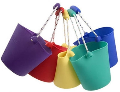 En Bebé-Delux he visto estos geniales cubos. Son hechos de silicona, son flexibles, sus colores son divertidos y lo mejor de todo es que pueden enrollarse y guardarse en el bolso para ahorrarnos trastos.