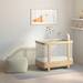 Está fabricada con una estructura de madera y paredes de malla de tela que permiten ver al bebé e incorpora un colchón a base de coco natural, látex antimicrobiano y una funda de algodón impermeable laminado.