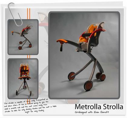 El diseño es bastante revolucionario, me recuerda un poco al Stokke pero mucho más espacial. Metrolla Stolla, así se llama el carrito, ha sido creado por Dan Levin, un diseñador de New Jersey que se dedica a desarrollar propuestas de desarrollo sostenible.