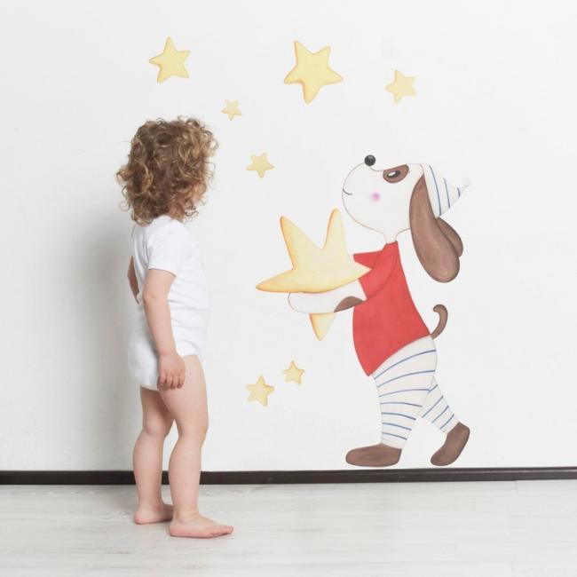 Por eso en su web encontramos, junto a estos originales vinilos, artículos como bodies para bebés y camisetas o láminas, todo decorado con los dibujos característicos de la autora, esas simpáticas figuras de conejitos y perritos. Además se pueden pedir ilustraciones personalizadas, el dibujo de nuestro retrato o del bebé...