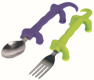 De cuando en cuando traemos a Bebés y más curiosos cubiertos con formas muy variadas para hacer las comidas de los más pequeños un poco más entretenidas. Trenes, aviones, camiones.. y también podremos decir ahora: "¡Abre la boca que viene el dinosaurio!"