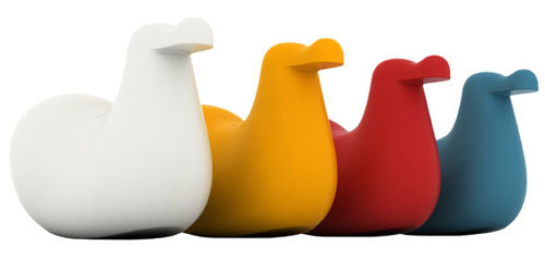 Inspirado en su fijación por los pájaros ha diseñado un balancín para los más pequeños que bien puede cumplir la función de juguete o de mueble decorativo. Está fabricado en polietileno moldeado, viene en cuatro brillantes colores y se puede usar tanto en el interior como en el exterior dada su alta resistencia.